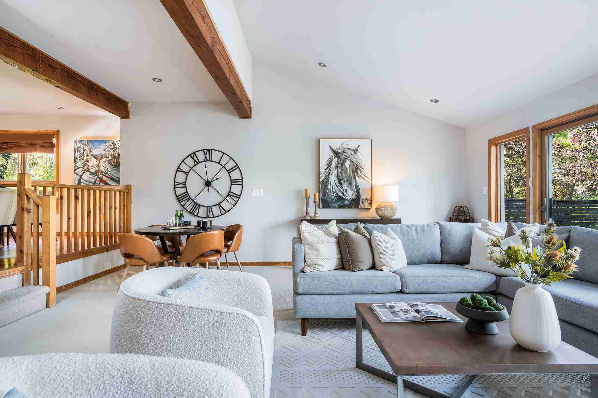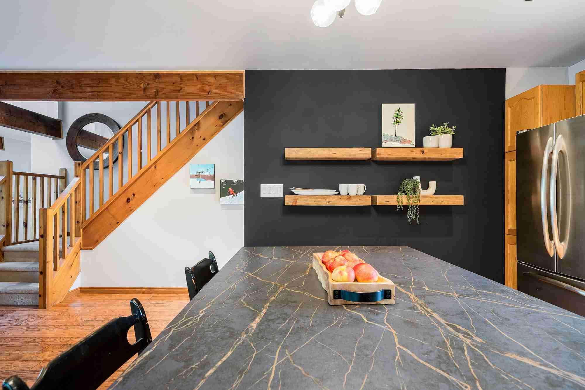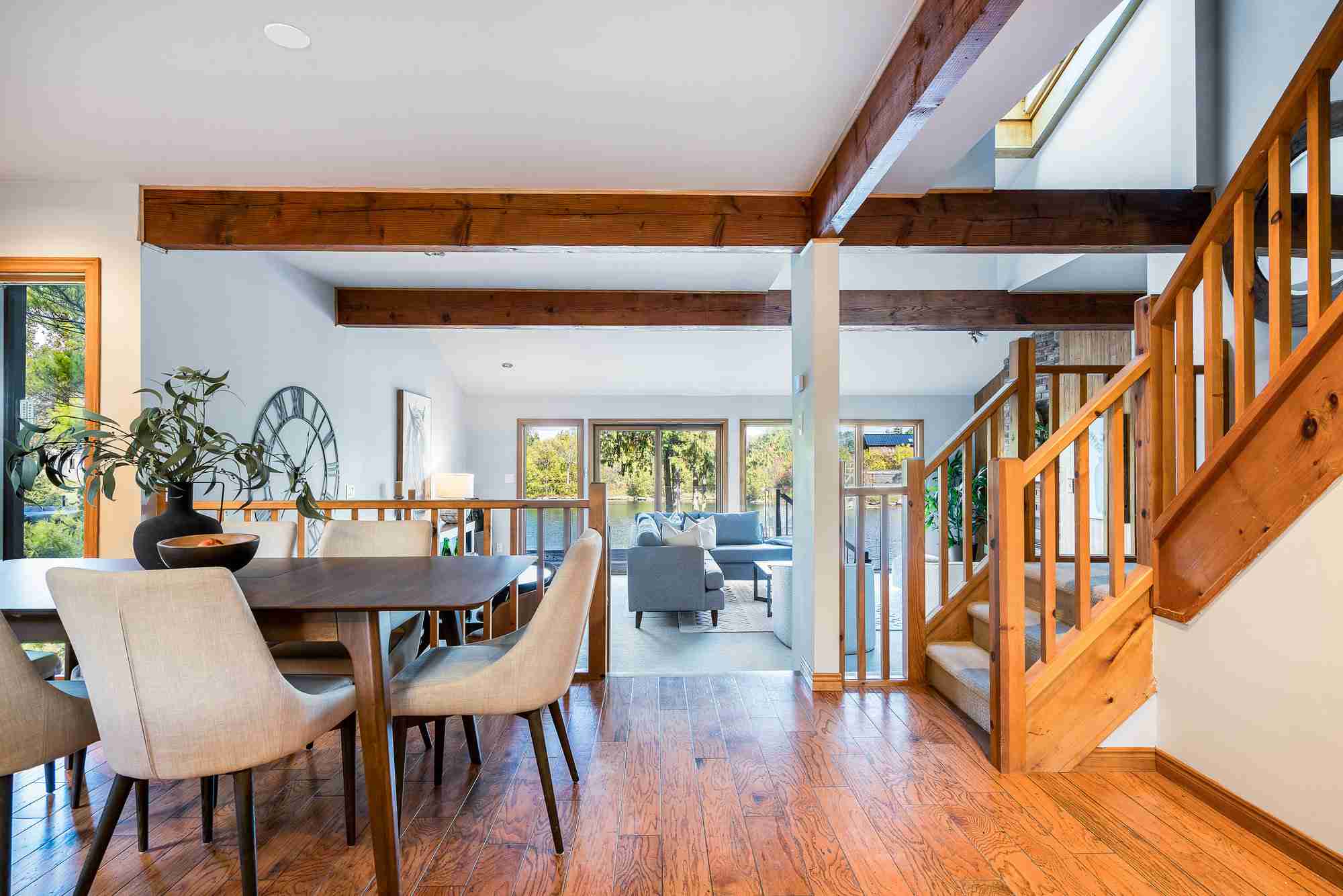 Nestled on 5 serene acres, Hidden Lake offers a tranquil and friendly community centred around a stunning private 1-acre lake. Beyond the swimmable, trout filled lake, enjoy resort style amenities shared with fellow homeowners: a sun-drenched outdoor pool, tennis/pickleball court, trampoline for the kids, fire pit, and a sprawling field perfect for soccer or frisbee. A private gate connects you directly to the Georgian Trail – ideal for biking, hiking, x-country skiing, with a short stroll to beautiful Georgian Bay. Home #9 is an entertainer’s dream – with 4 bed/4 baths, almost 3,000 sq ft of living space plus 400 sq ft of outdoor decks. Step in through the welcoming foyer to a spectacular view of the Hidden Lake through the open concept main floor. A large kitchen with breakfast bar & dining area flows seamlessly into the living room and out to the deck, perfect for gatherings. $100k spent on newly renovated bathrooms, sleek kitchen counters, skylight, pot lights, door hardware, Envirotech roof, new furnace & central air make this home modern & comfortable. Highlights – main floor large private bedroom or office, 2 newly rebuilt & waterproofed decks off the 2nd floor bedrooms, a retractable motorized awning on the back deck & Level 2 electric car charge outlet in one of the two private driveways beside the home. Waterproofed finished basement with 3-piece washroom, guest bedroom, games & media room, laundry & storage. As a common elements condo, homeowners share costs for the grounds & amenities, making this an amazing opportunity for all-season turn-key living. Evening cocktails overlooking the pond, morning pickleball tournaments followed by cannonballs off the diving tower, biking the Georgian Trail into Blue Mountain Resort or the town of Thornbury – your resort life has never been better! Minutes to ski hills, beaches, golf courses, hiking trails, and more. Life Peaks Here!